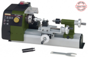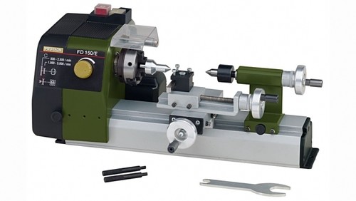 Machinebed met zwaluwstaart geleiding gemaakt van gegoten aluminium. Voorzien van stille DC speciale motor, 2-traps riemaandrijving en elektronische snelheidsregeling voor hoog motorvermogen in het lagere toerentalbereik (voor grotere werkstukken) en voor een juiste snelheid, zelfs voor de kleinste werkstukken. Hoofdspil met precisie lagersen spindeldoorlaat van 8,5 mm. Opname geschikt voor standaard ER-11 spantangen.